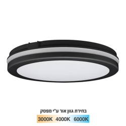 צמוד תקרה דגם ספייס עגול גוף שחור Tri-Color IP40 Ф300mm 25W