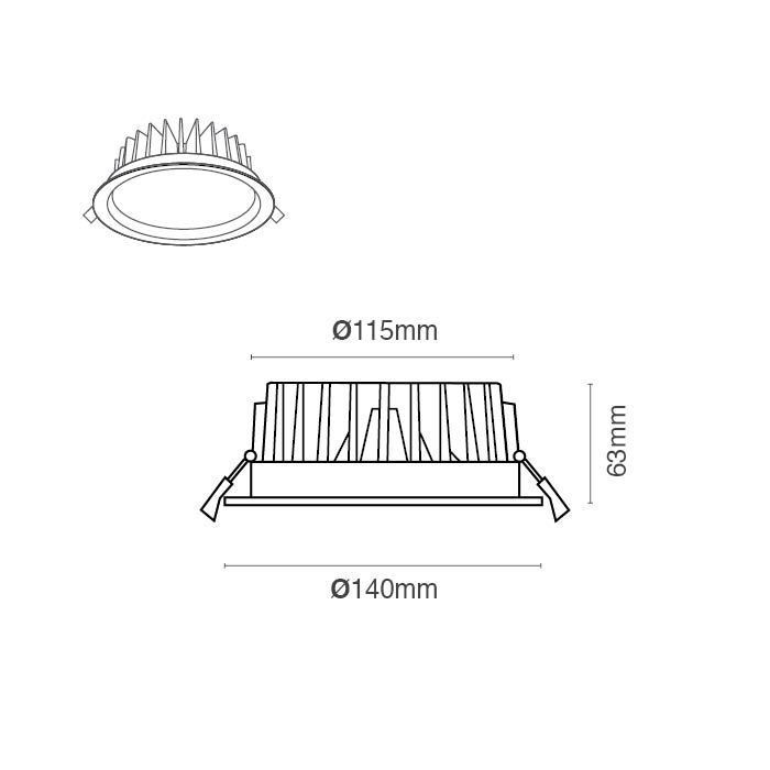 שקוע "D" מקצועי 18W עגול שחור IP44 Ø140 125Lm/w 100°