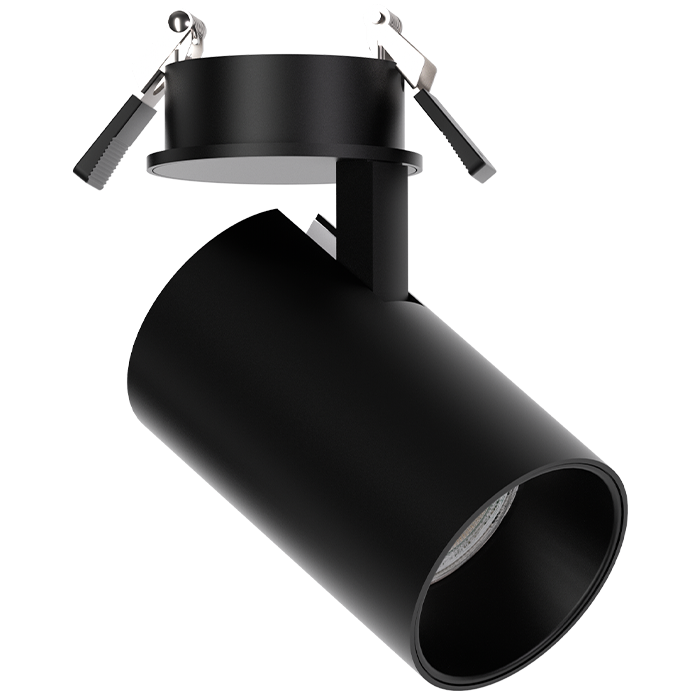 ראש צלינדר שקוע גבס MR16, סדרת טריניטי, מתכוונן, שחור + 2 רפלקטורים, 6 שנות אחריות.