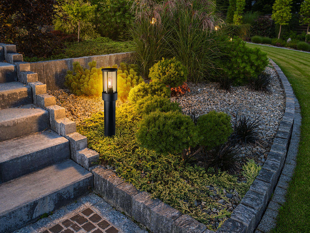 מנורת עמוד גינה 50 ס"מ סדרת מור מוגנת גוף שחור IP44 E27 (ללא נורה)