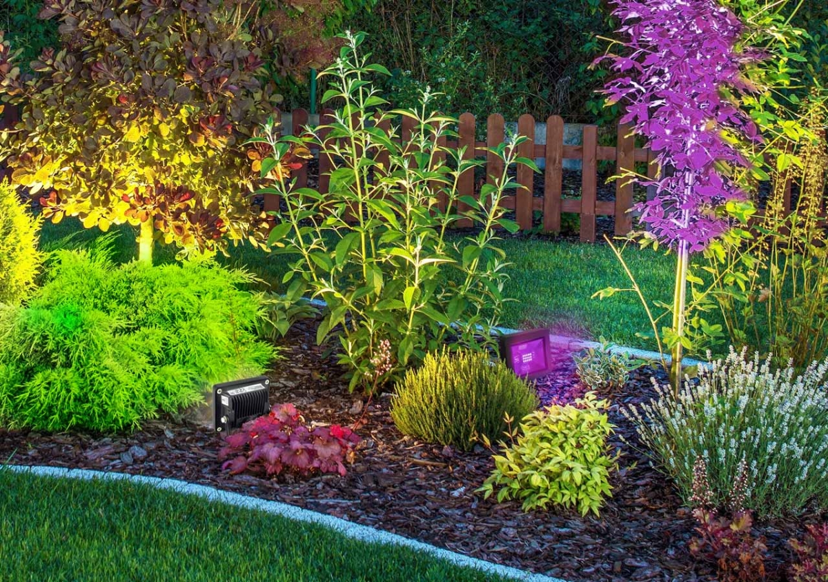 ליצירת אווירה מתאימה במיוחד בשטחים פתוחים. שילוב של מספר פנסי הצפה בצבעים