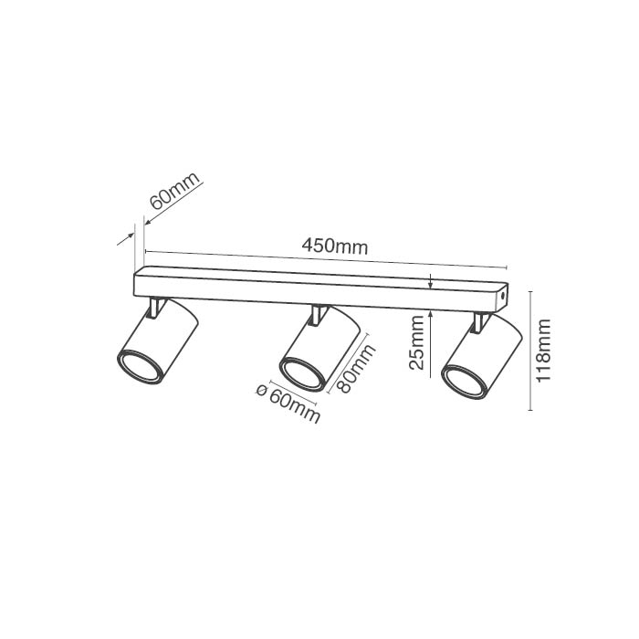 רול.6 שלישיה פס צמוד תקרה מתכוונן גוף שחור 450x112 מ"מ GU10 כולל נורה GU10 בהספק 7W