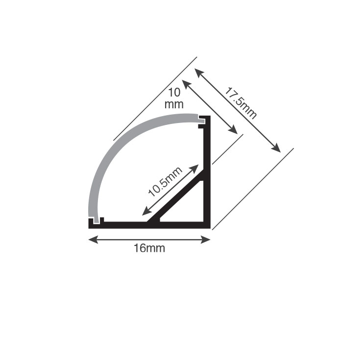 פרופיל אלומיניום שחור 3 מטר פינתי מעוגל