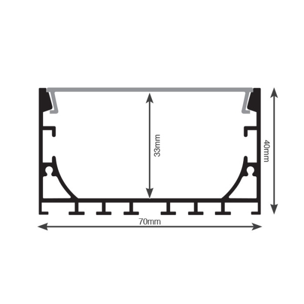 ▪▪ פרופיל פתח אור 70, עומק 40 ס"מ, על טיח, שחור מאט, מחיר למטר (מגיע ב6 מטר)