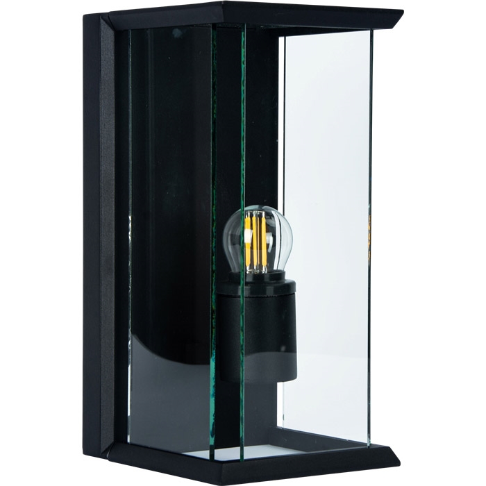 מנורת קיר מוגנת גוף שחור עם זכוכית שקופה מרובע IP44 E27 (ללא נורה) MAX 60W