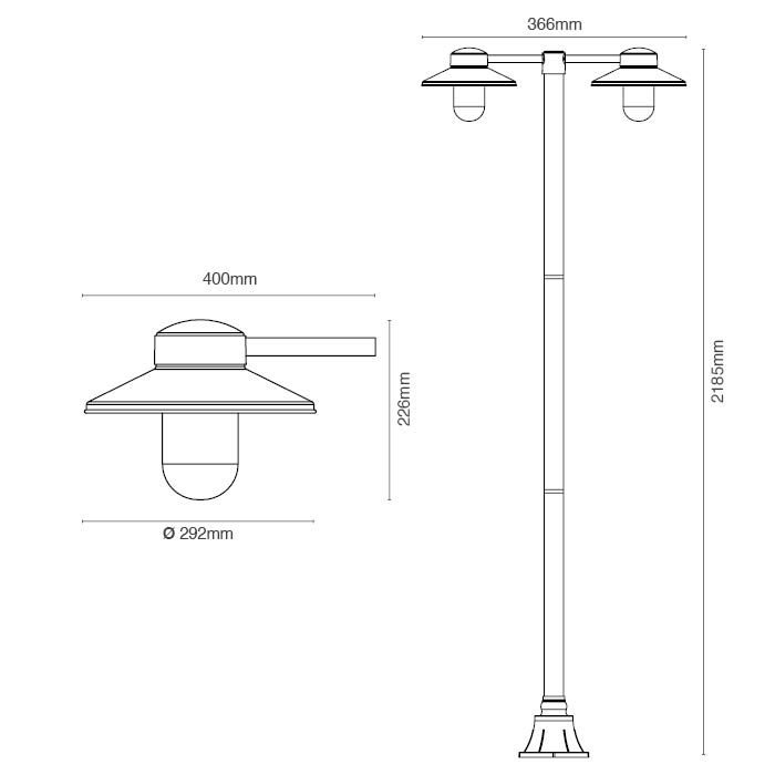 עמוד גינה "קיימבריג'" E27x2 230V IP54 ראש כפול