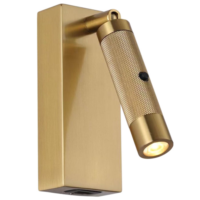 ** מנורת צמוד קיר 3W IP20 גוף מוזהב עם זכוכית אור חם + USB