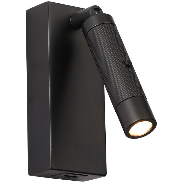 ** מנורת צמוד קיר 3W IP20 גוף מוזהב עם זכוכית אור חם + USB