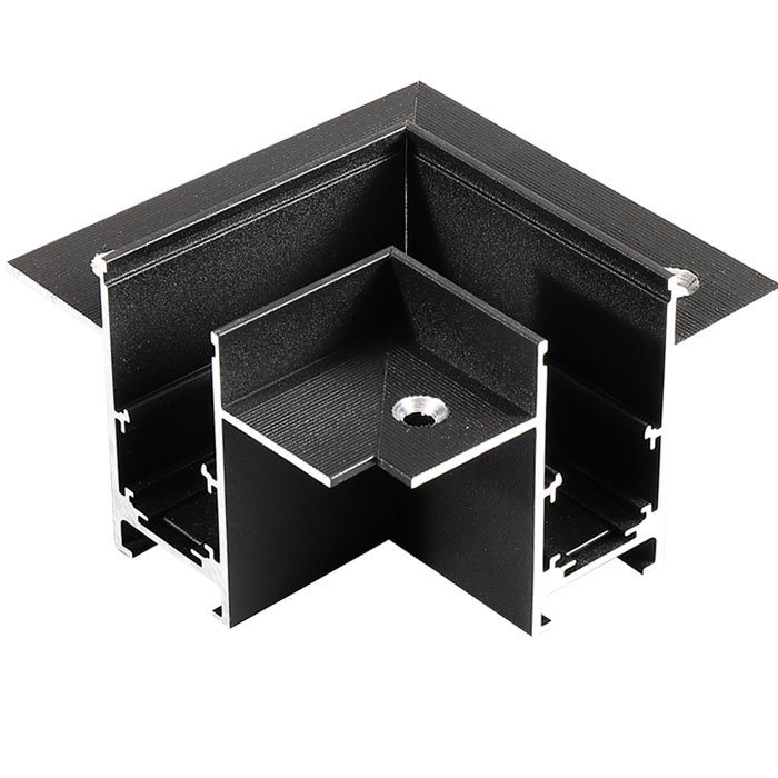 פס מגנטי זווית-תקרה שקוע שחור כולל מחברי חשמל ומחבר מכני