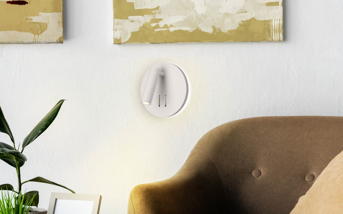 מנורת צמוד קיר קריאה עגולה 3W+6W IP20 גוף לבן אור חם