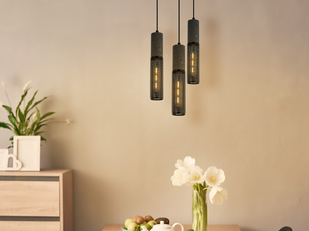 מנורת תליה E27 בטון מסדרת "מאש" - כבל 2 מטר