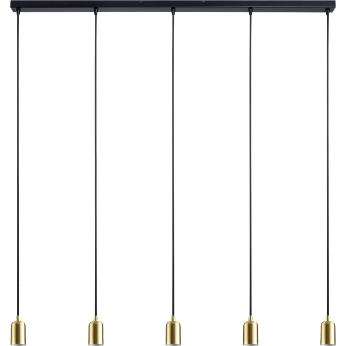 גוף תלייה ישר, שחור עם פליז, חמישייה E27 , כבל מצופה בד 2 מטר