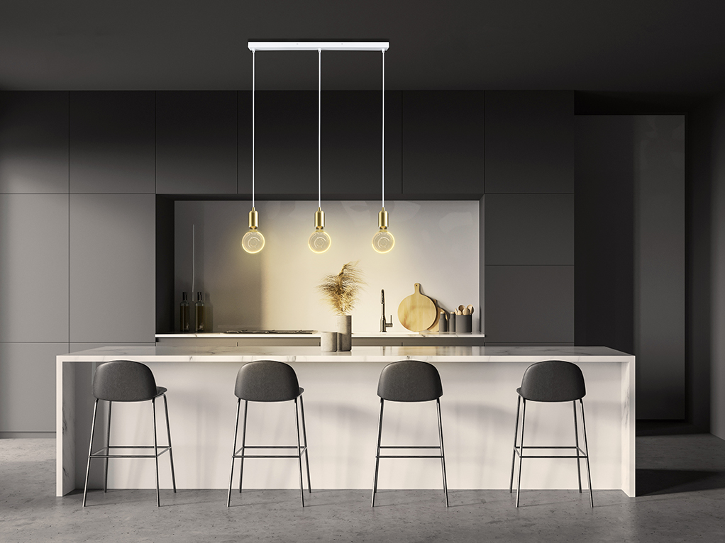 גוף תלייה ישר לבן, שלישיה E27 , כבל מצופה בד 2 מטר