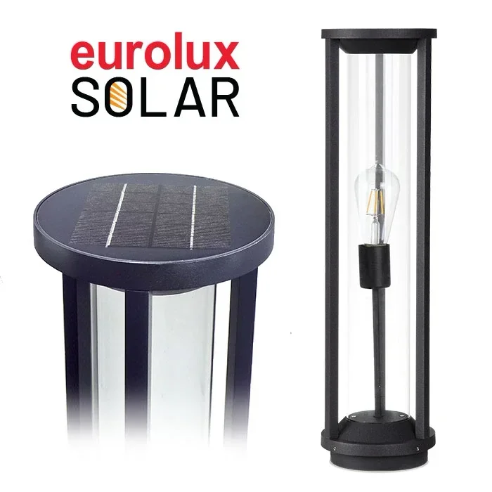 בולרד סולארי, גובה 60 ס"מ, עגול, גוף שחור IP54 (כולל נורה 3V)