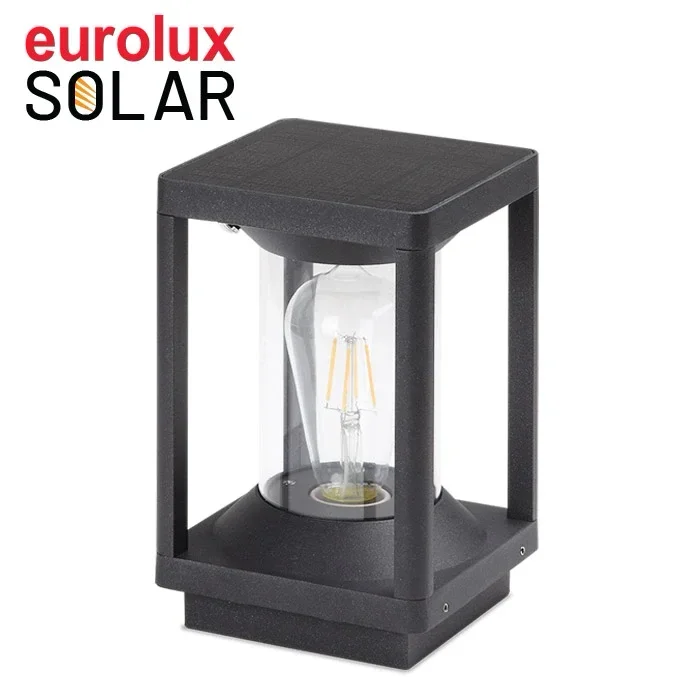 מנורת חומה סולארית מרובעת, גוף שחור IP54 (כולל נורה 3V)