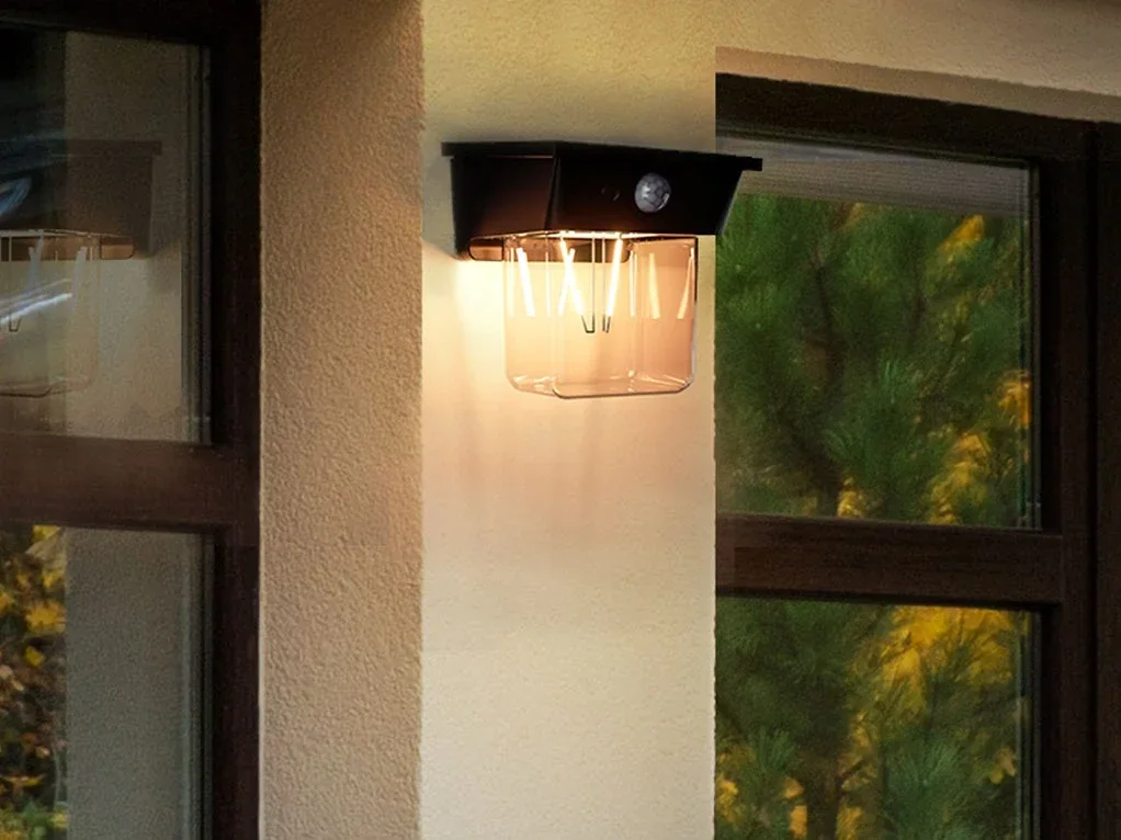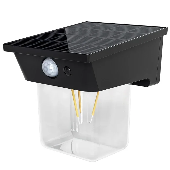 צמוד קיר נטען סולארי שחור IP54 אור חם