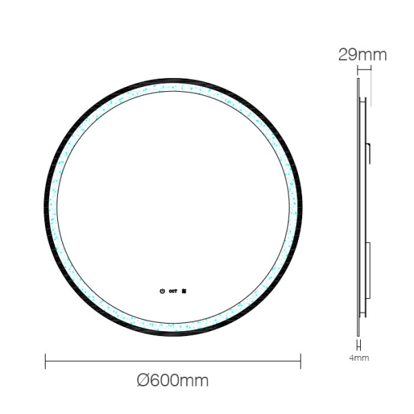 Aspetto מראה "ROME" עגולה צפה "שחור" תאורה בחזית ואחורית Φ600 CCT & DIMMER & DEFOG IP44