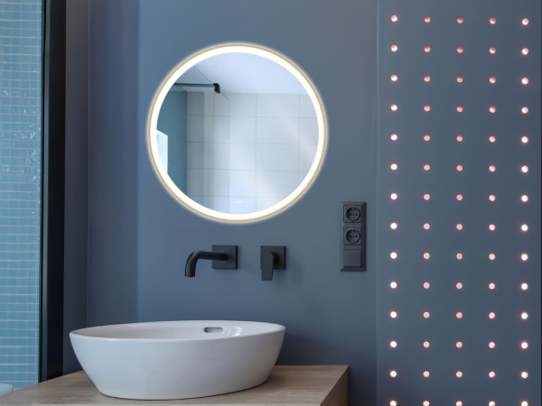 מראה עגולה | פרופיל בלגי | תאורת לד בחזית | ניתנת לעמעום | CCT | IP44 | 600 Φ