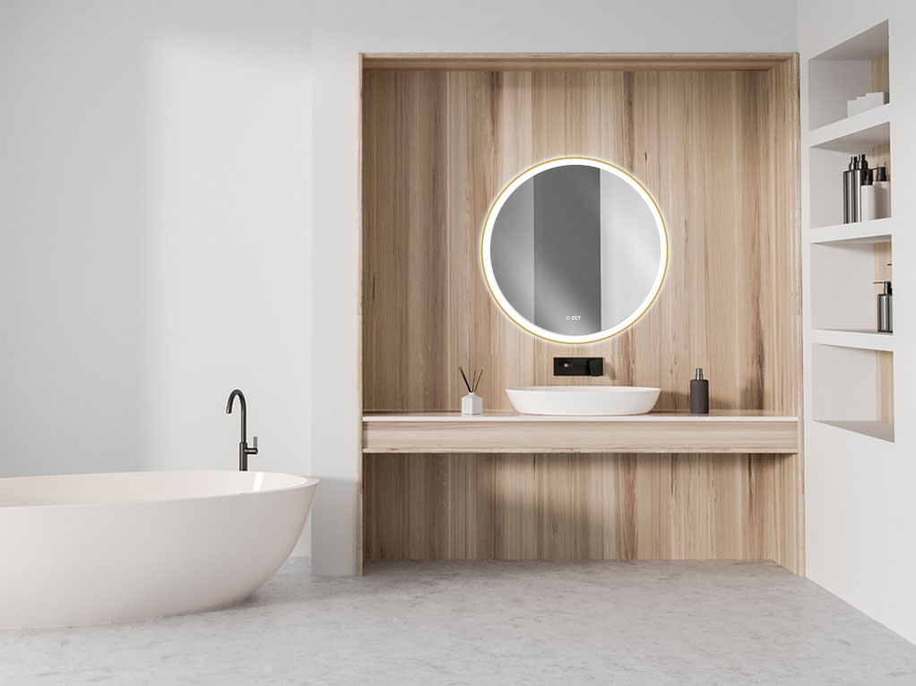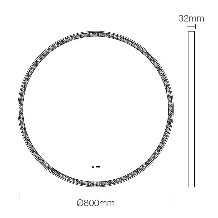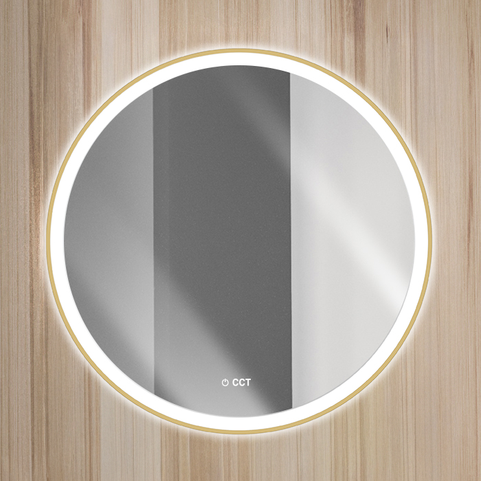 מראה עגולה | פרופיל בלגי | תאורת לד בחזית | ניתנת לעמעום | CCT | IP44 | 800 Φ