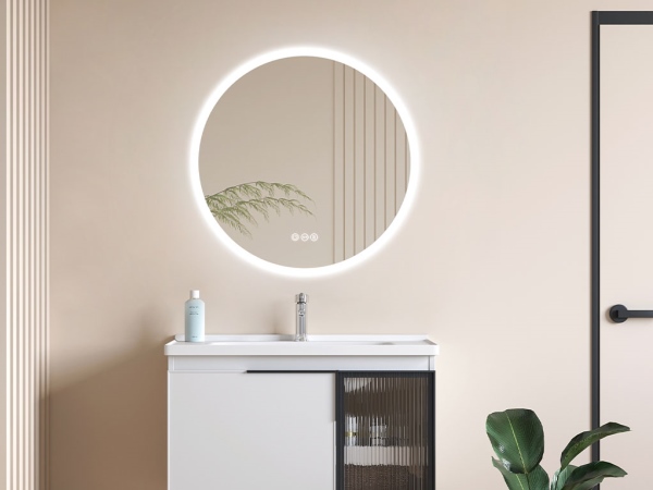 Aspetto מראה "NAPOLI" עגולה מרחפת "שוליים מוארים" בחזית Φ600 CCT & DIMMER & DEFOG IP44