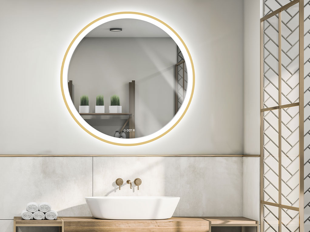 מראה עגולה צפה | תאורת לד בחזית ואחורית | ניתנת לעמעום | מפסק להפגת אדים | CCT | IP44 | 800 Φ