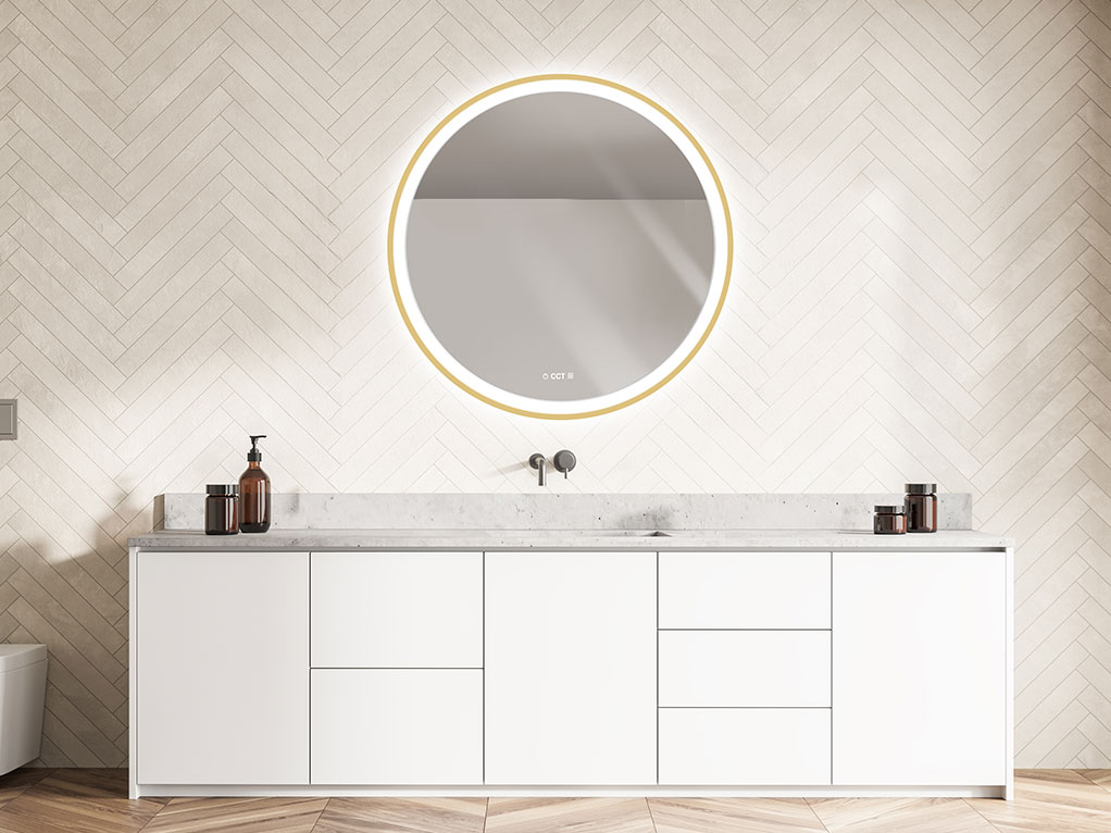 מראה עגולה צפה | תאורת לד בחזית ואחורית | ניתנת לעמעום | מפסק להפגת אדים | CCT | IP44 | 1000 Φ