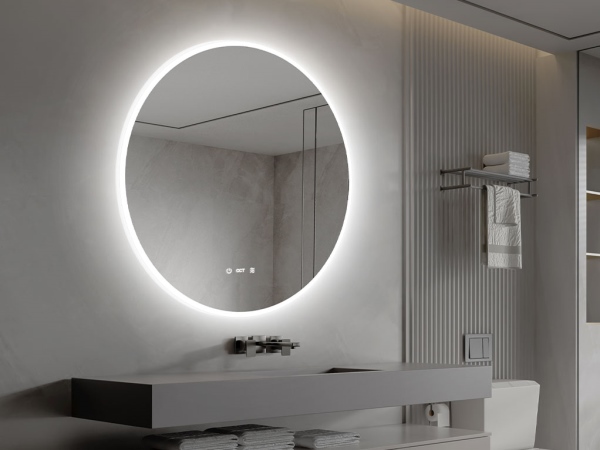 Aspetto מראה "NAPOLI" עגולה מרחפת "שוליים מוארים" בחזית Φ1000 CCT & DIMMER & DEFOG IP44