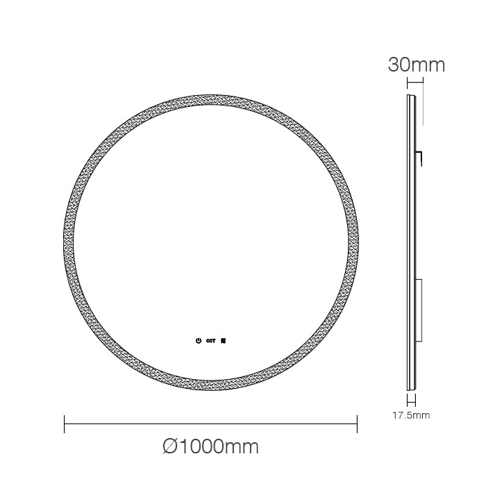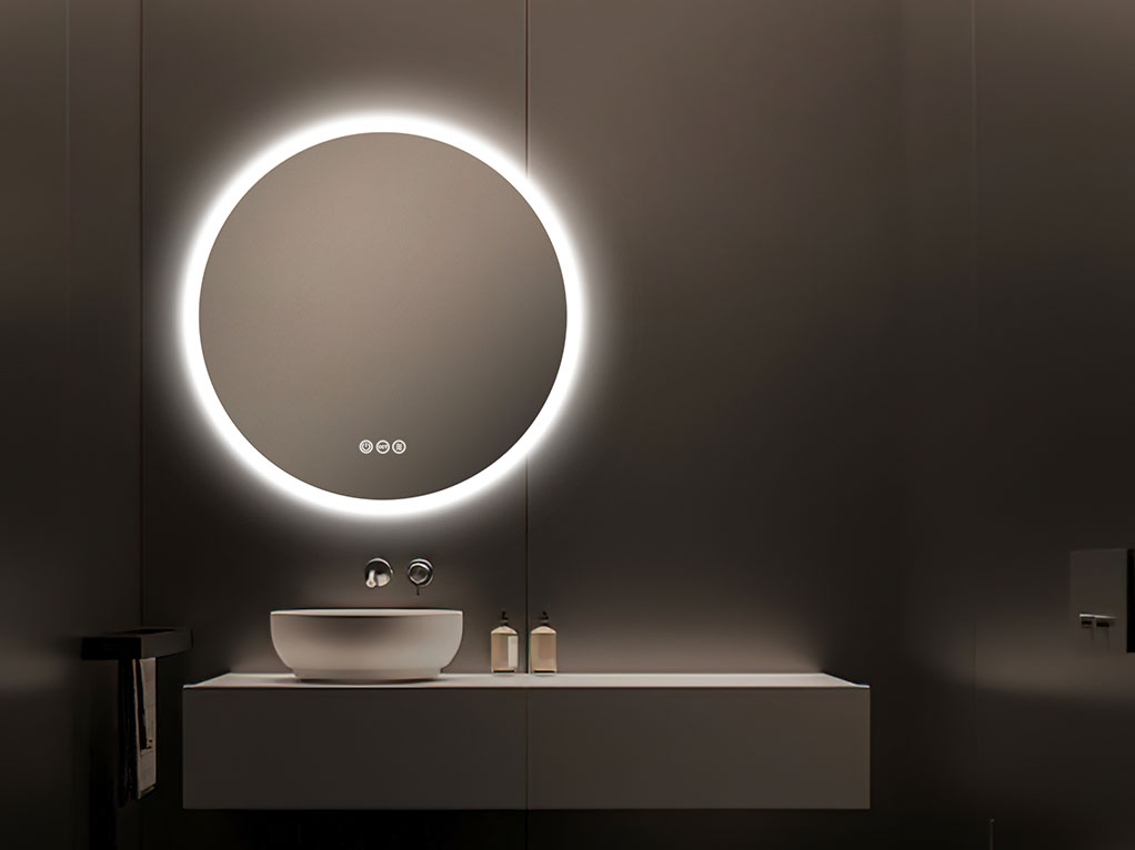 מראה עגולה מרחפת | שוליים מוארים בחזית | ניתנת לעמעום | מפסק להפגת אדים | CCT | IP44 | 1000 Φ