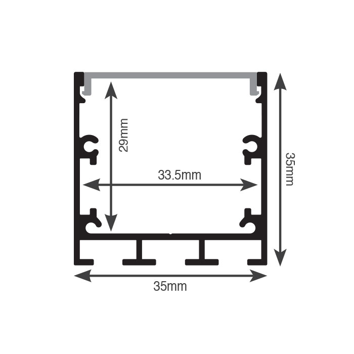 פרופיל פתח אור 35, עומק 35 ס"מ, על טיח, שחור מאט, מחיר למטר (מגיע ב3 מטר)