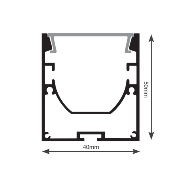 פרופיל פתח אור 40, גובה 50 מ"מ, עם מגש רפלקטור, צמוד תקרה, שחור מאט, מחיר למטר (מגיע ב4 מטר)
