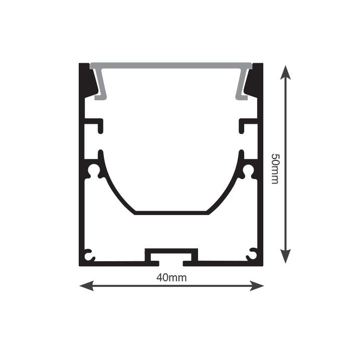 פרופיל פתח אור 40, גובה 50 מ"מ, עם מגש רפלקטור, צמוד תקרה, לבן מאט, מחיר למטר (מגיע ב4 מטר)