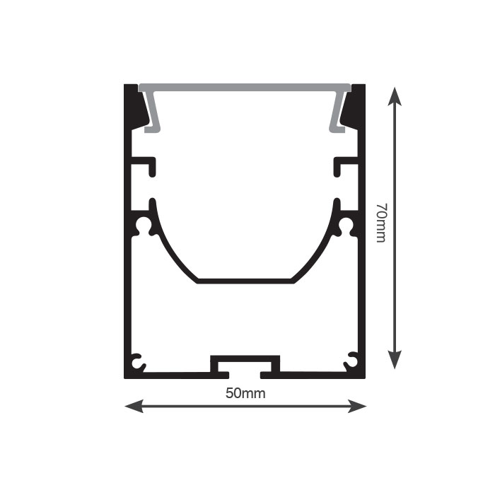 פרופיל פתח אור 50, גובה 70 מ"מ, עם מגש רפלקטור, צמוד תקרה, לבן מאט, מחיר למטר (מגיע ב4 מטר)